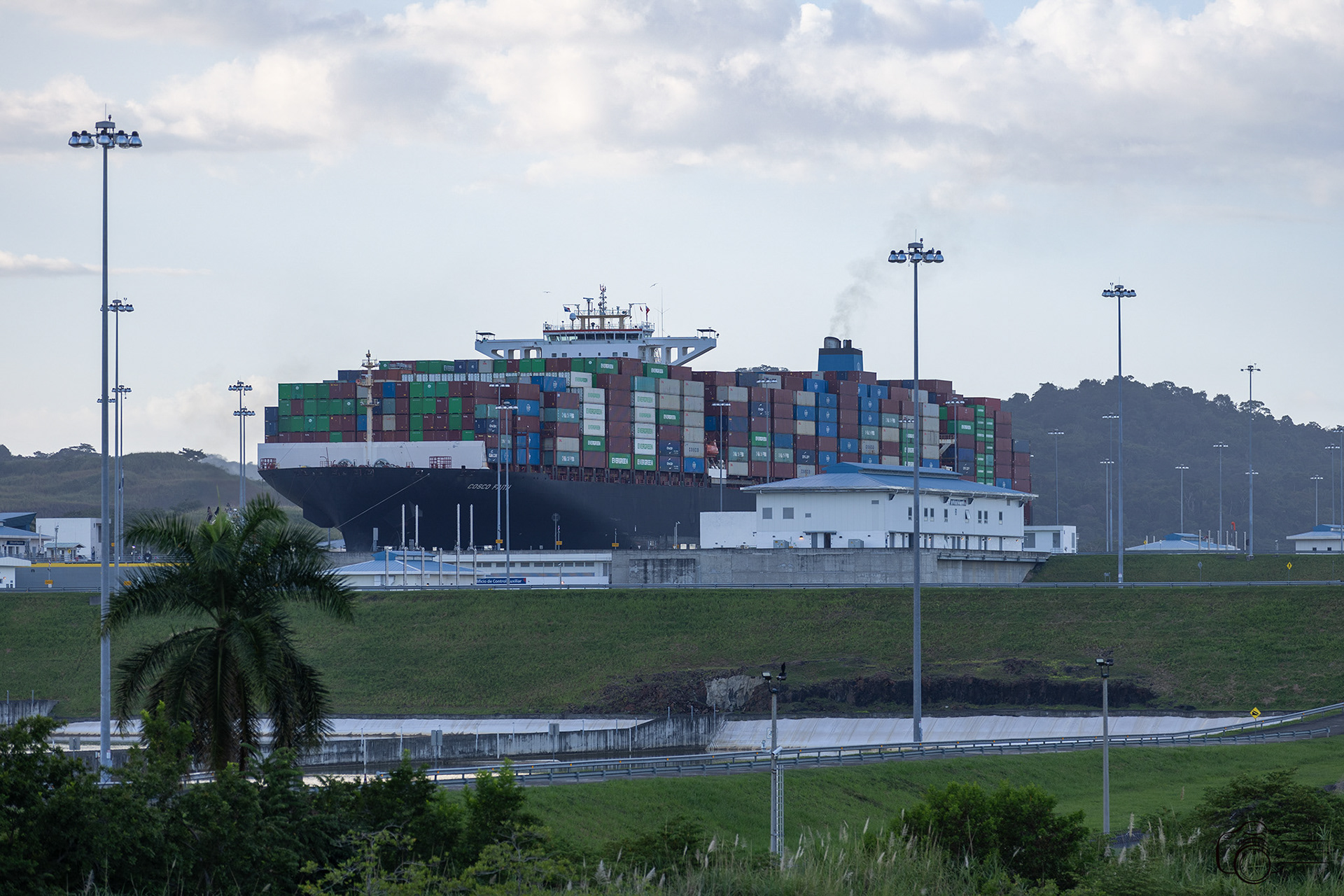 View of Container Ship Transiting Cocoli Locks